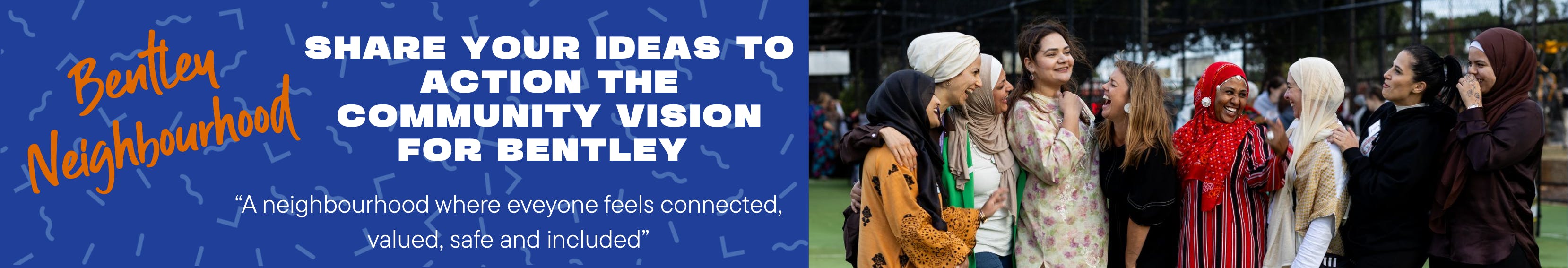 • Please share your ideas to help support the wider Bentley community to collaboratively deliver the vision of a neighbourhood where everyone feels connected, valued, safe and included.