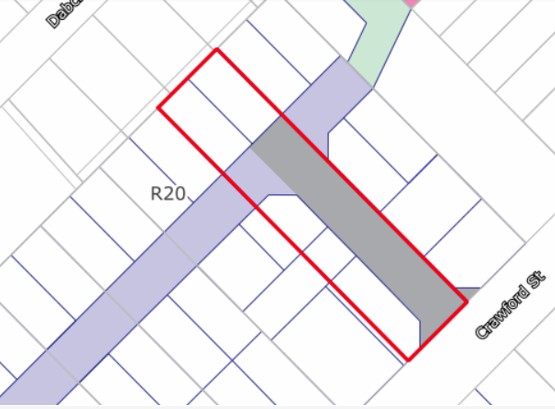 Vehicle access to the proposed lots from Crawford Street is provided by a common property access driveway instead of the Scheme Road (Grey Road) and the Subdivisional Road (Purple Road) as required by TPS21 and shown in the map below.
